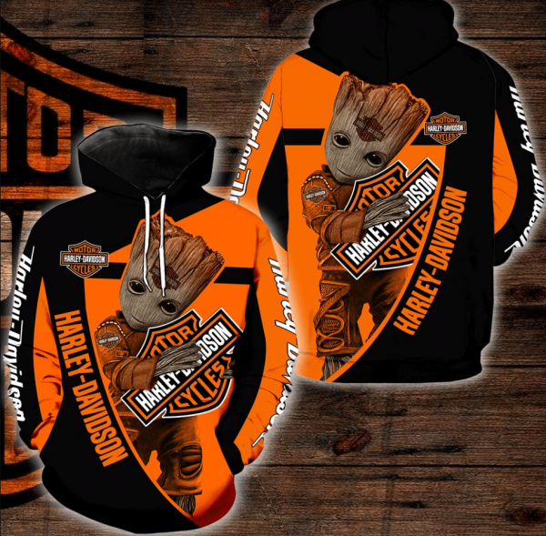 Baby Groot With Moto Harley Davidson Cycles 3D Printed Hoodie/Zipper Hoodie – 64b0a39167f2