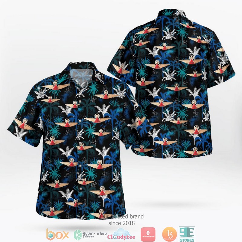 Delta Airlines Captain Pilot Wings Badge Palm Tree Black Hawaiian Shirt