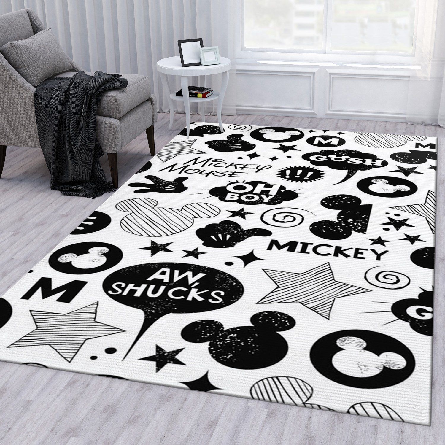 Minnie Mouse Black And White Area Rug For Christmas Living Room Rug Family Gift US Decor
